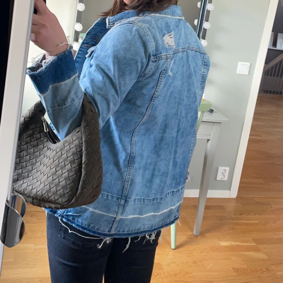 Säljer denna ascoola jeansjackan från Lindex men köpte på sellpy! Så snygg och passar perfekt till våren🩵🩵 Den har slitningar och fransar som är jättecoola och detaljerna gör plagget väldigt unikt😊😊