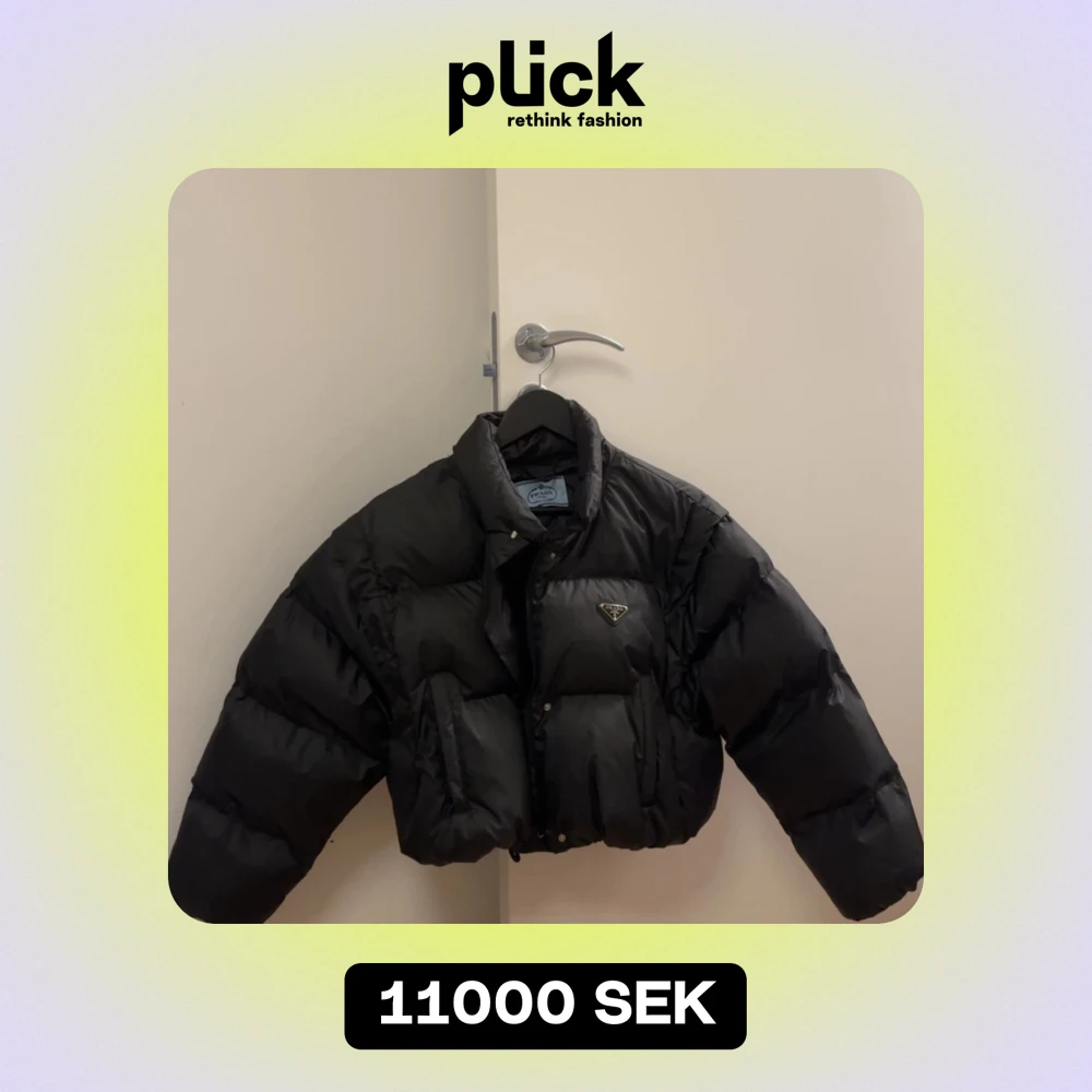 Storlek S Croppad dunjacka Man kan ta av ärmarna för att göra den till en väst Jag är 162cm och upplever den lite oversized, man får lätt plats med en hoodie Använd 3 gånger förra vintern Nypris 22000SEK