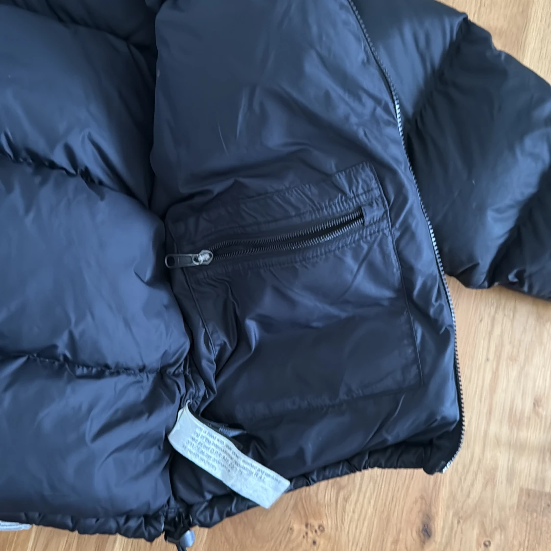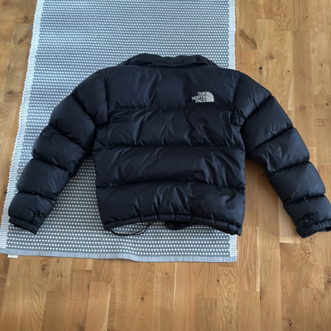 Svart dunjacka från The North Face i storlek XS. Jackan är pösig och har en klassisk pufferstil med dragkedja, hög krage och innerficka med dragkedja. Perfekt för kalla dagar och har logga på både bröstet och ryggen. Materialet är polyester och dun. Två små hål som man knappast kan se på första bilden på vänster ärm och i mitten till höger. Är precis för liten för mig som är 180cm