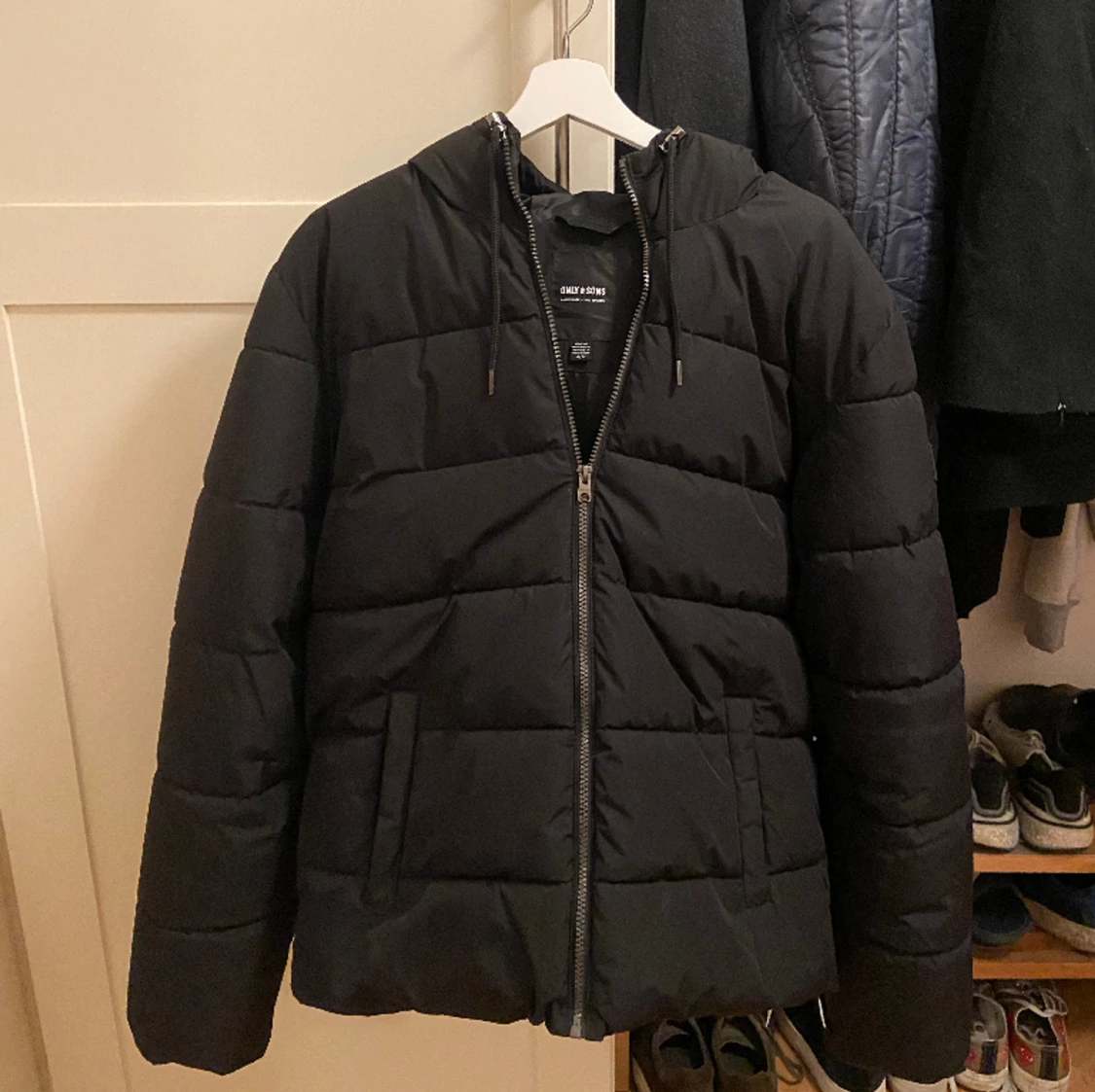 En stilren svart jacka från only & sons köpt från Boozt.com. Storlek M