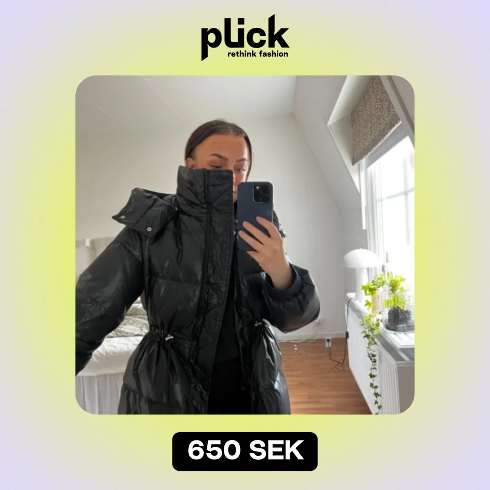 Snygg jacka från Kappahl som är helt slutsåld. Använd fåtal gånger, är i väldigt fint skick. Är en Xs. Själv använder jag vanligtvis XS och S och är 156cm lång. Glansig med spänne i midjan som går att justera.