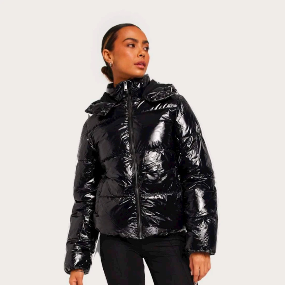 Säljer en snygg svart glansig pufferjacka med dragkedja från Nelly . Använd några gånger inga skador på jackan. Säljer pågrund av jag köpt en ny jacka. Perfekt för kalla dagar med sin varma och vadderade design. Jackan har en hög krage och långa ärmar, vilket gör den idealisk för vinter pch höst.