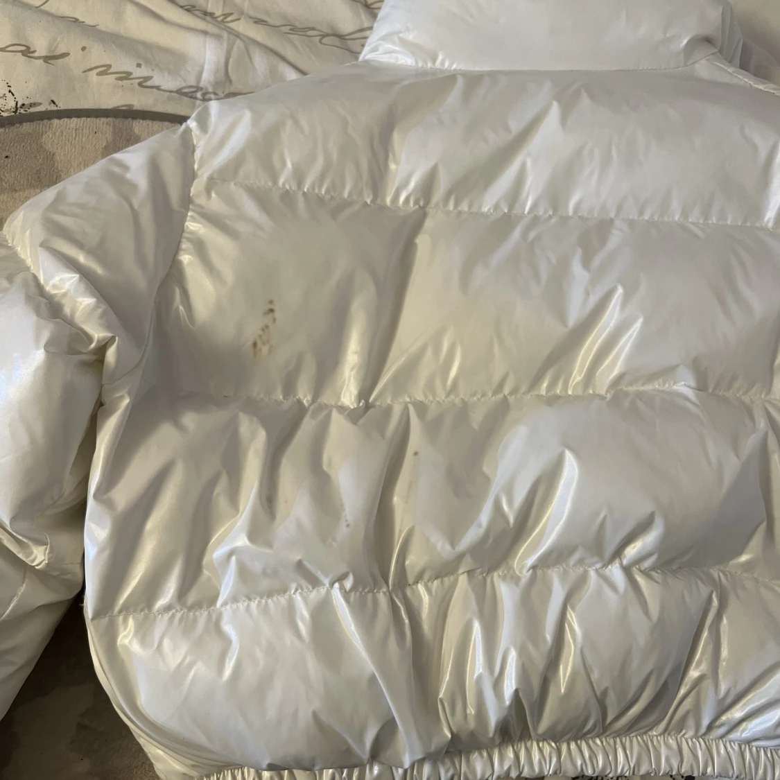 Jätte fin croppad pufferjacka, som andvändst 1 vinter ❄️har fläck där bak som syns på sista bilden. Storlek L men funkar med M