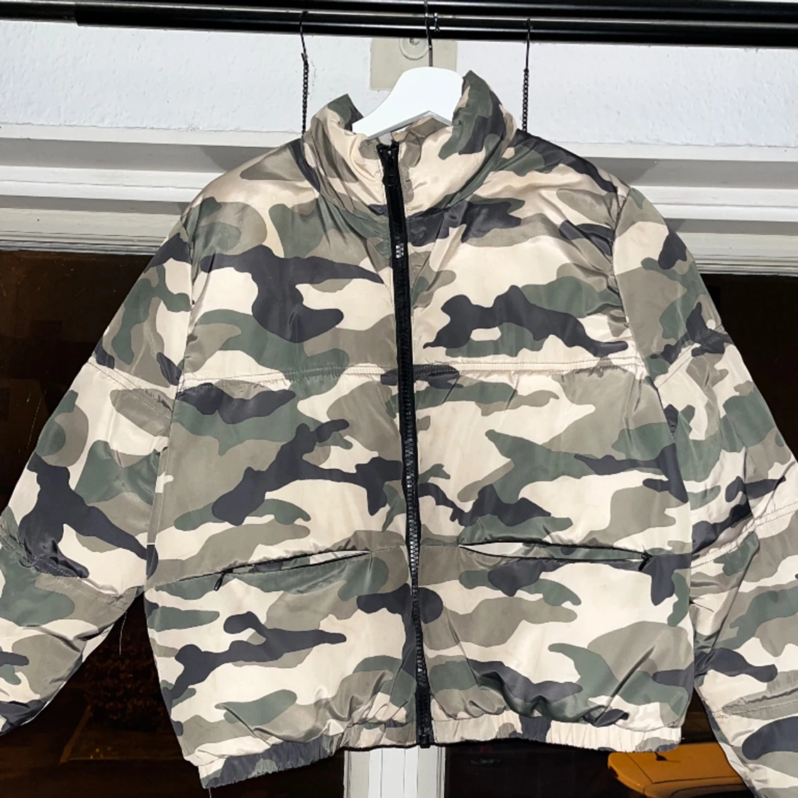 Jacka med militärmönster. Fint skick. Köpte för ett par år sen men den hänger bara.