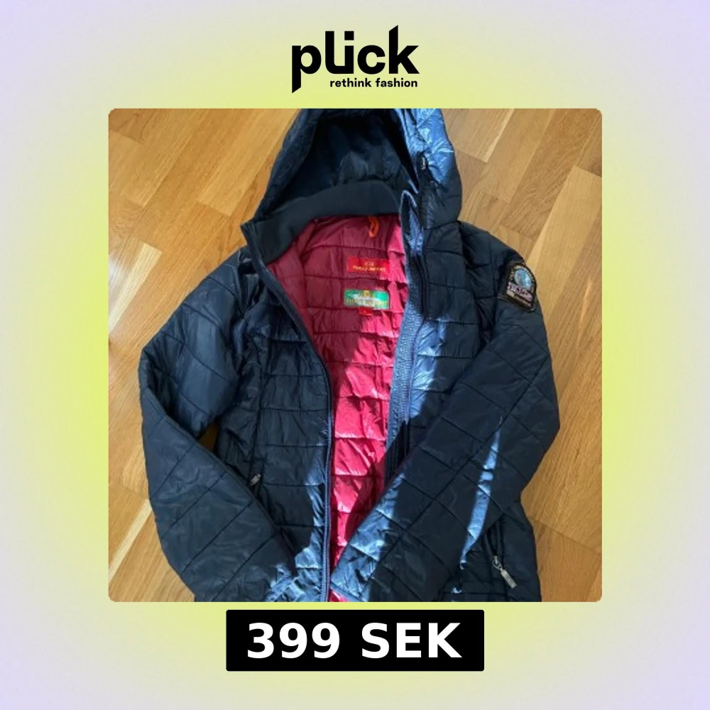 Snygg mörkblå pufferjacka från Parajumpers. Storlek L men sitter som en S.😆med röd insida och coolt avtagbart patch på ärmen. Jackan har huva, dragkedja och quiltad design. Perfekt för kalla dagar och har en lätt, sportig känsla.