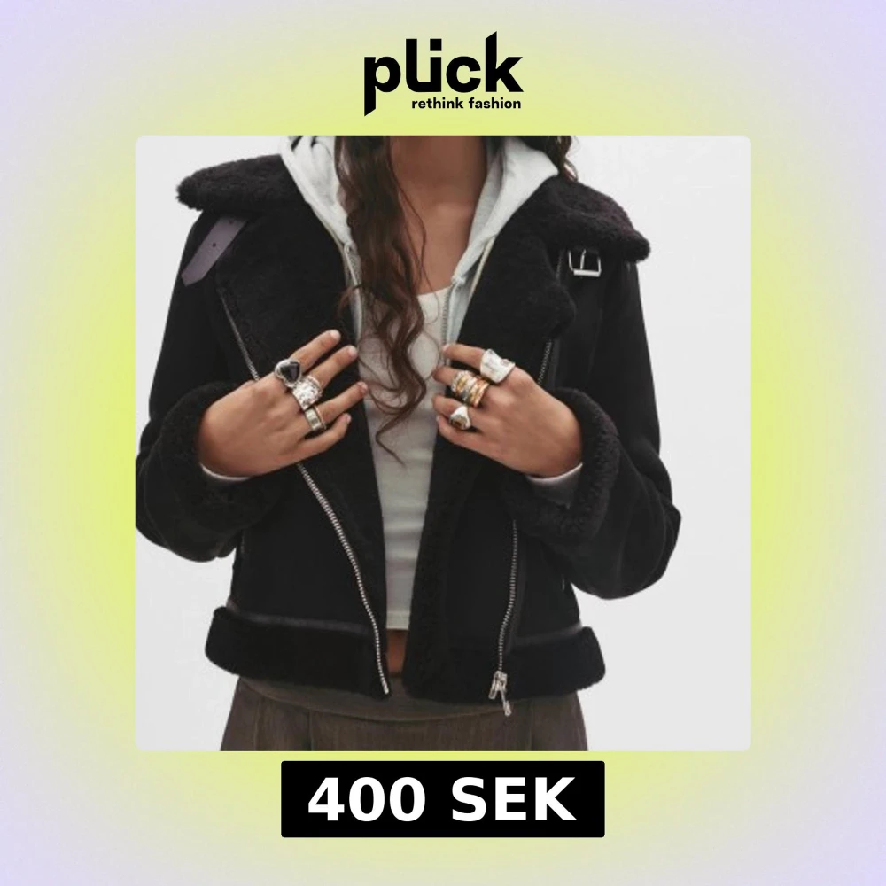 Svart teddyjacka med bred krage, dragkedja och detaljer i fuskpäls. Jackan har två fickor med dragkedja, spänne vid kragen och croppad passform. Perfekt för dig som vill ha en snygg och trendig look med lite edge. . . Vill även lägga tilll att den är liten i storlek, själv har jag storlek M kan hända att jag har S.