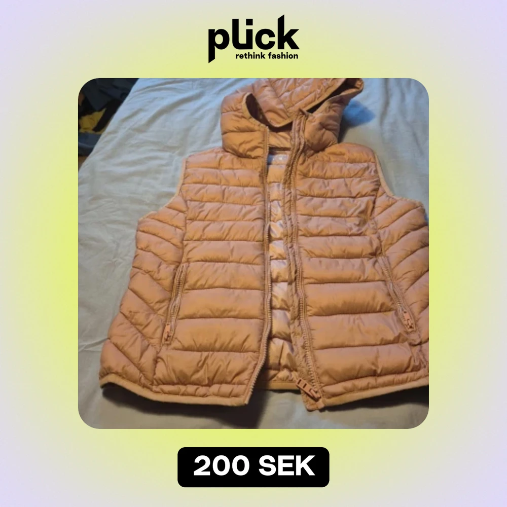 Säljer en snygg och bekväm beige dunväst från Pull&Bear. Perfekt för vintern med sin quiltade design och praktiska dragkedja. Västen har en huva som ger extra värme och stil. Passar perfekt för en casual look eller som ett extra lager under jackan.