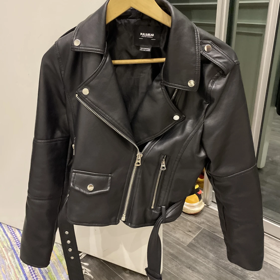 Jättefin skinnjacka, inte använt mycket. Stoleken L men sitter som en S, XS.💕 Köpte den för 400kr köparen står för frakten