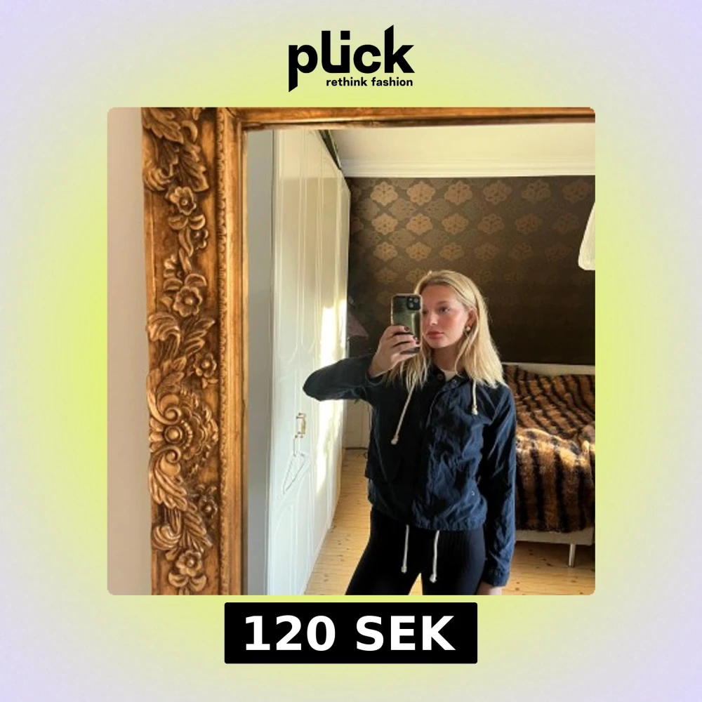 Snygg marinblå vindjacka med dragkedja och justerbar dragsko i midjan. Perfekt för blåsiga dagar och har en stilren design som passar till det mesta. Jackan har långa ärmar och en bekväm passform.