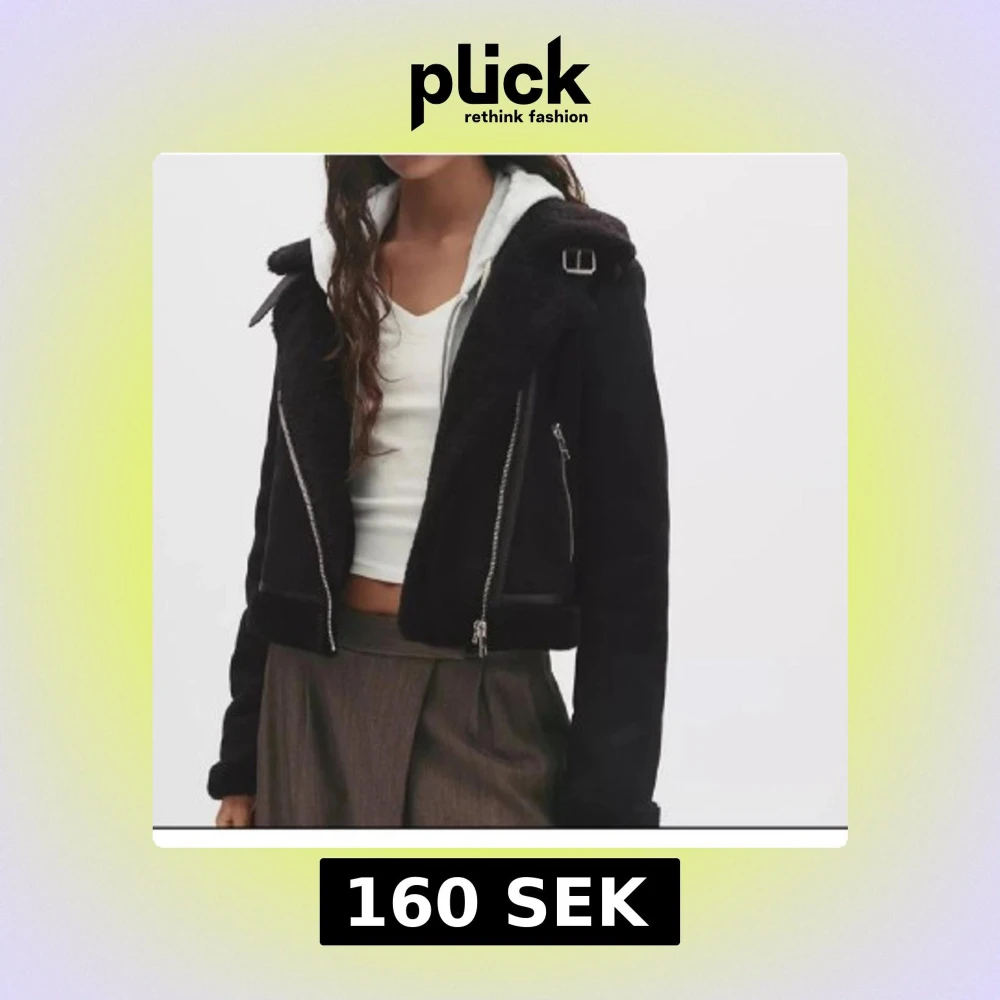 Snygg svart teddyjacka från Pull&Bear med croppad passform, stora slag och dragkedja framtill. Jackan har mjukt foder, detaljer med spännen vid krage och midja samt pälsimitation vid ärmslut och nederkant. Perfekt för kyliga dagar och ger en cool vibe.