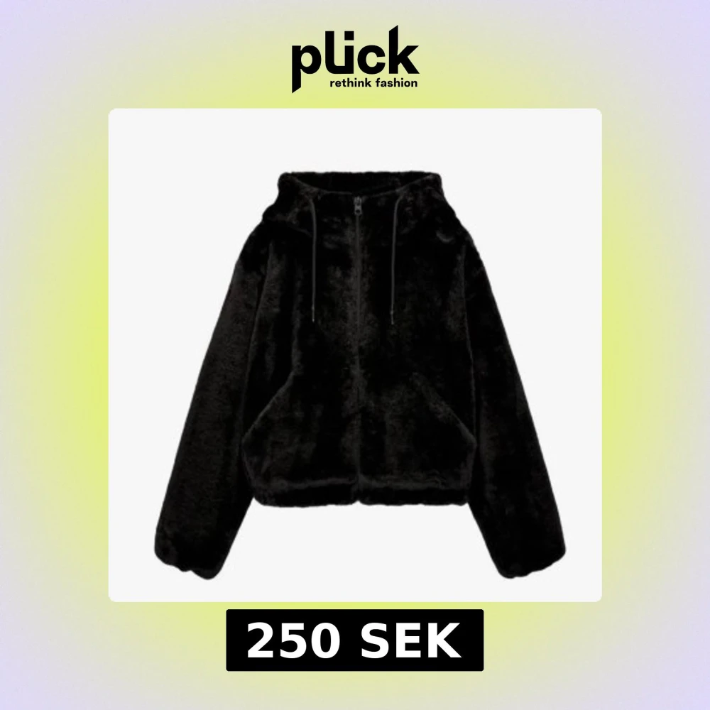 Mysig svart teddyjacka med dragkedja och huva, jackan har långa ärmar och praktiska fickor framtill. Från PULL&BEAR i storlek S, nyskick!