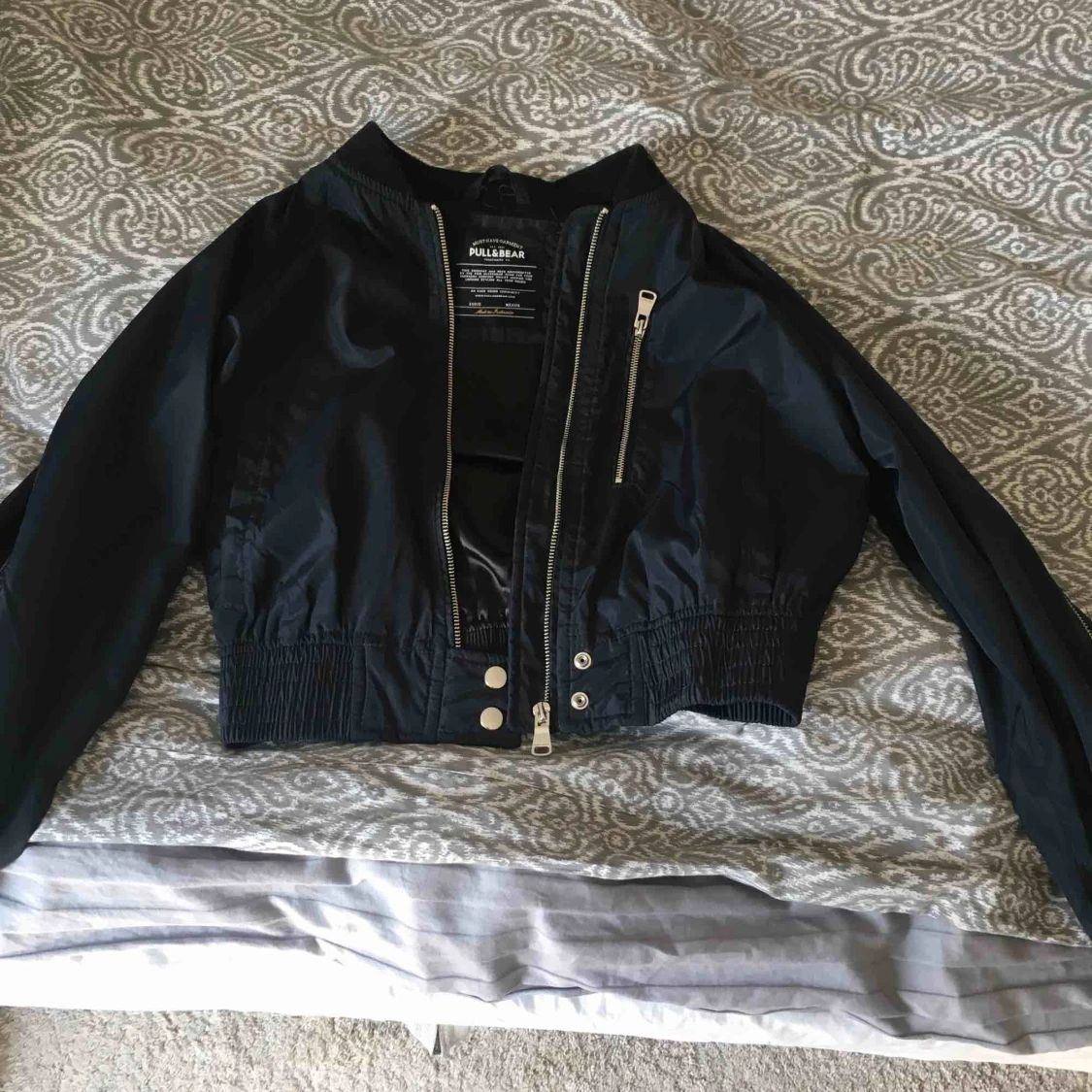 Så cool marinblå bomberjacka med dragkedjor längs armarna. Den är från pull&bear och jag säljer den då den inte kommer till användning längre. Skriv för fler bilder!