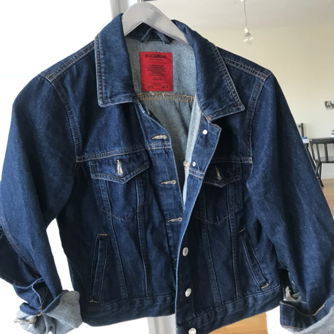 Tuff jeansjacka från Pull and Bear med volang på baksidan och på baksidan av ärmarna. Endast använd en gång! Köpare står för frakt.