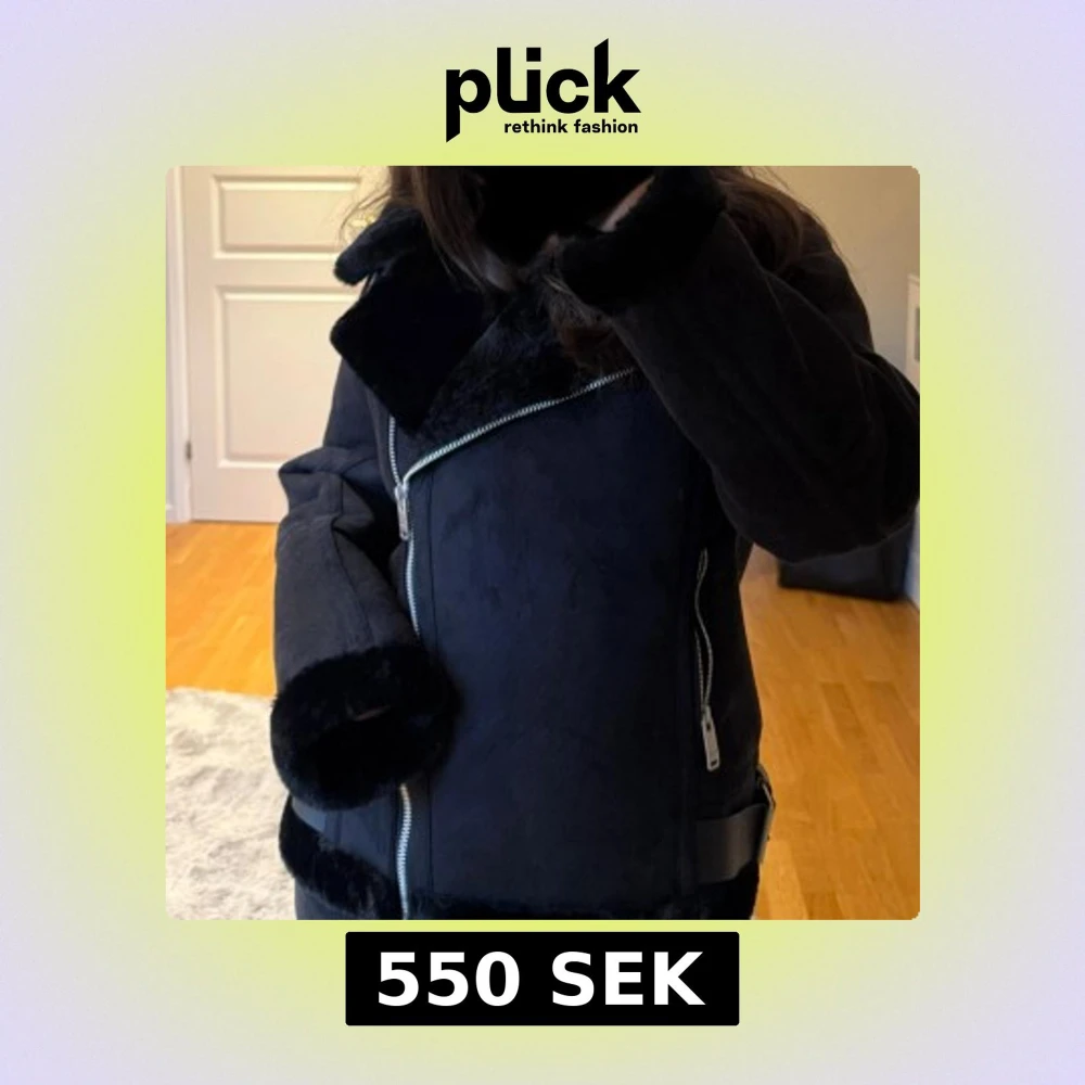 Snygg svart pälsjacka från Pull&Bear krage och mjuk fuskpäls på insidan och vid ärmslut. Jackan har silvriga dragkedjor, spänndetaljer vid kragen och midjan samt en cool, lite oversized passform. Aldrig använd! Prislapp är kvar.