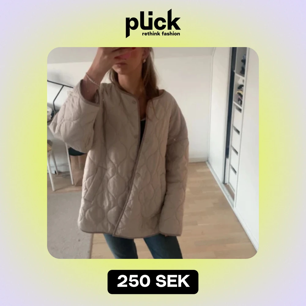 Quiltad beige jacka från bikbok. Storlek S, men oversized. Nypris 599 kr. Endast använd ett fåtal gånger. Perfekt jacka nu i höst❣️