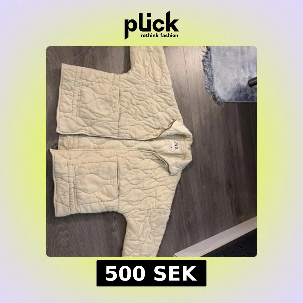 Säljer en quiltad beige jacka från ZARA i storlek S. Jackan har ett vågigt mönster, två stora fickor framtill och dragkedja. Den har en loose passform och är långärmad, perfekt för dig som gillar chill och stilren vibe.