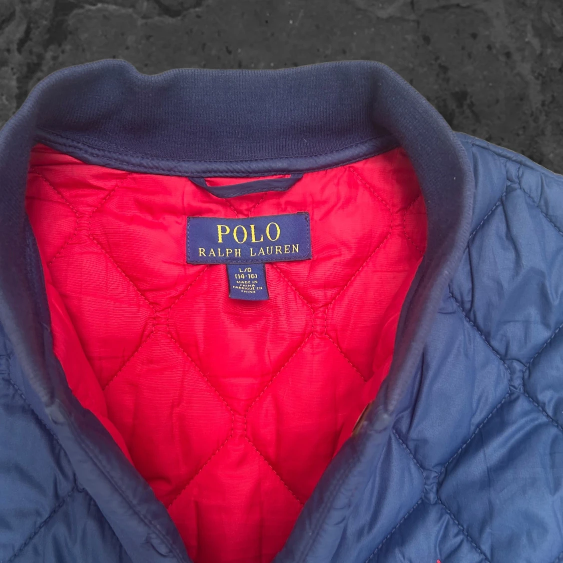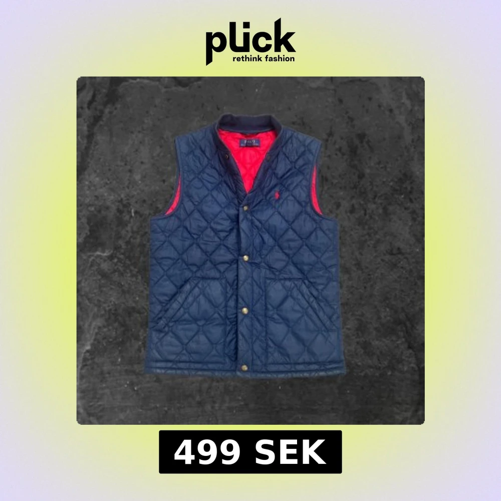 Quiltad väst från Polo Ralph Lauren i marinblått med röd insida. Västen har tryckknappar framtill, två fickor och en liten röd logga broderad på bröstet. Klassisk och sportig look med ribbad krage och snygg passform.