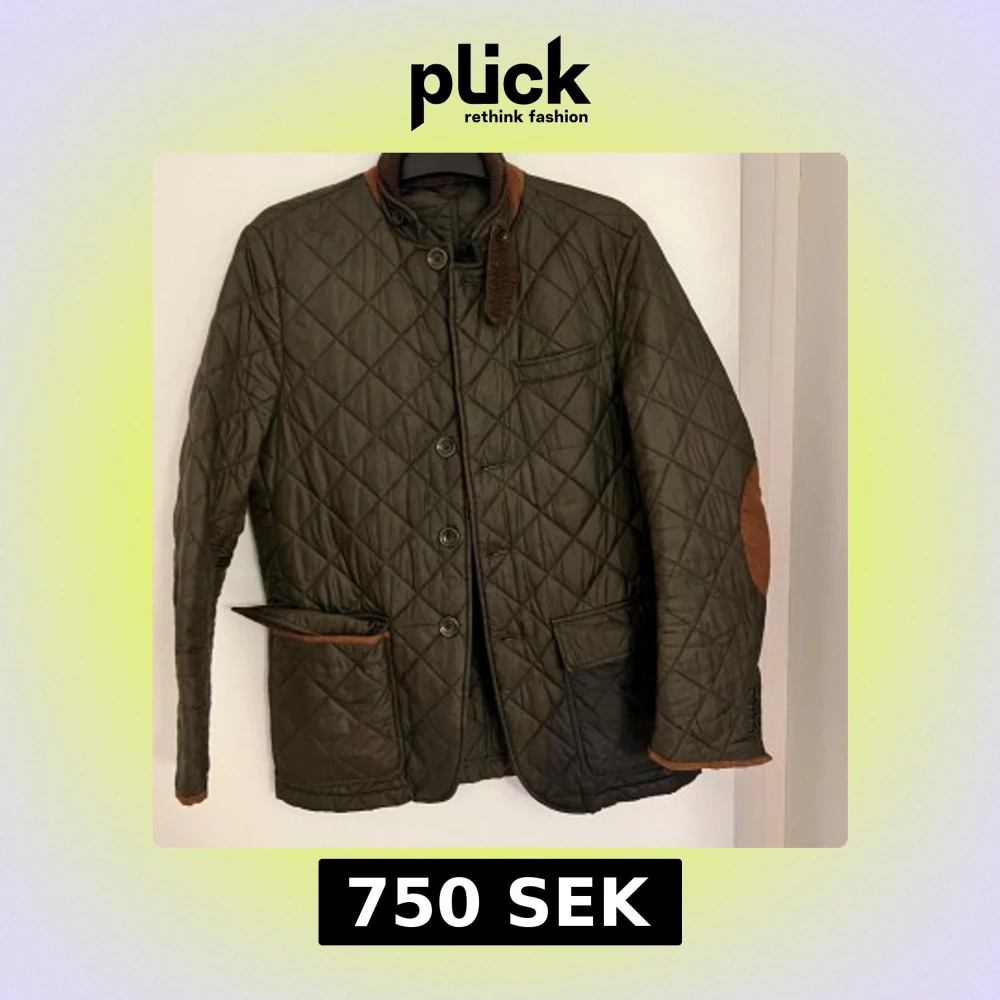 Mörkgrön quiltad jacka från Oscar Jacobson med bruna detaljer på armbågar, krage och fickor. Klassisk design med knappar framtill, flera fickor och snyggt rutmönster. Perfekt för dig som gillar stilren och tidlös look.