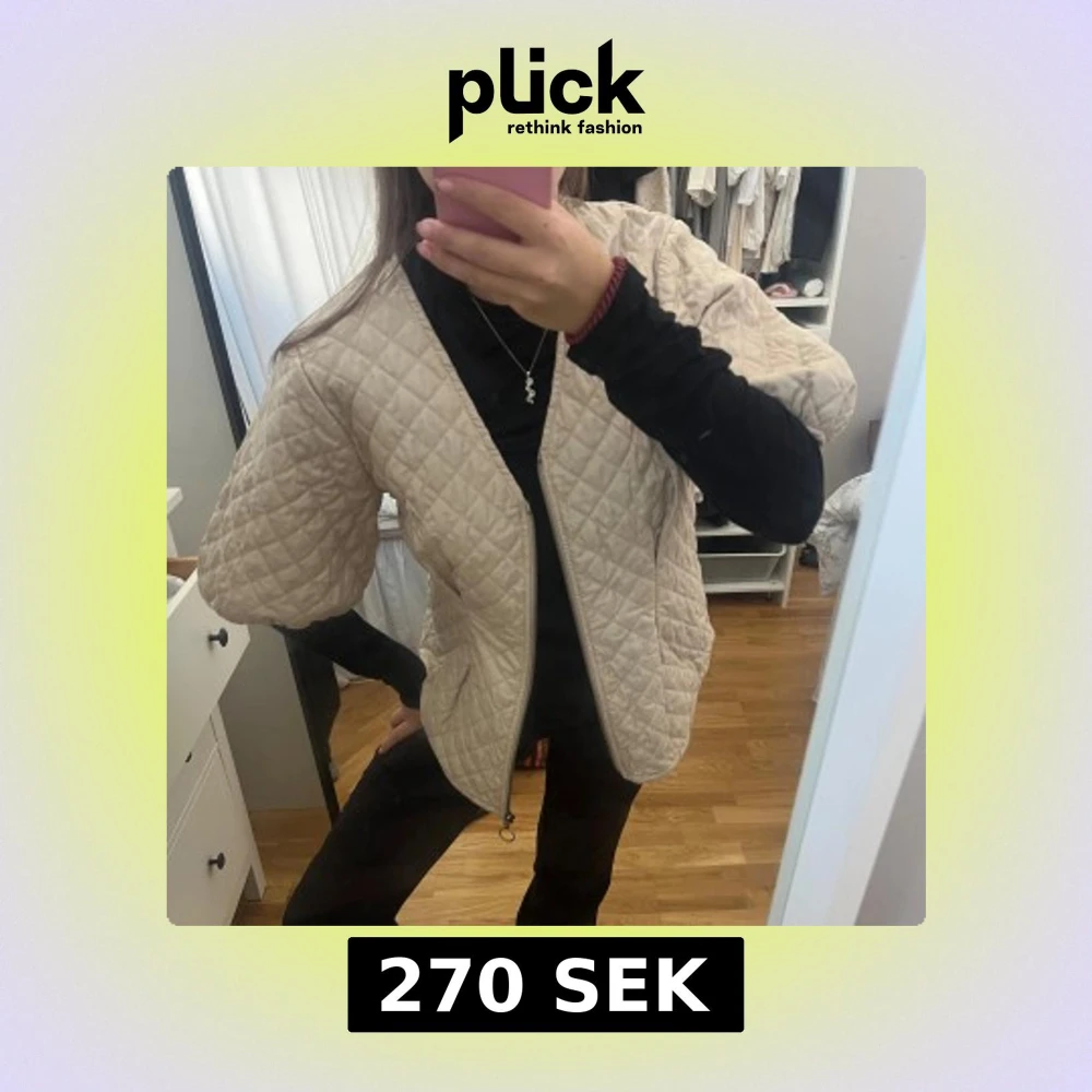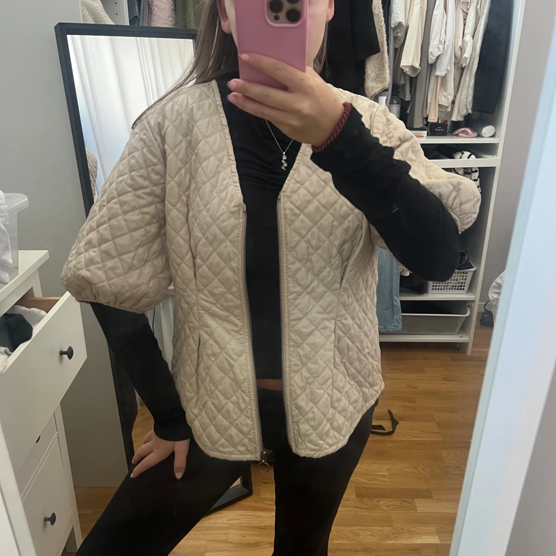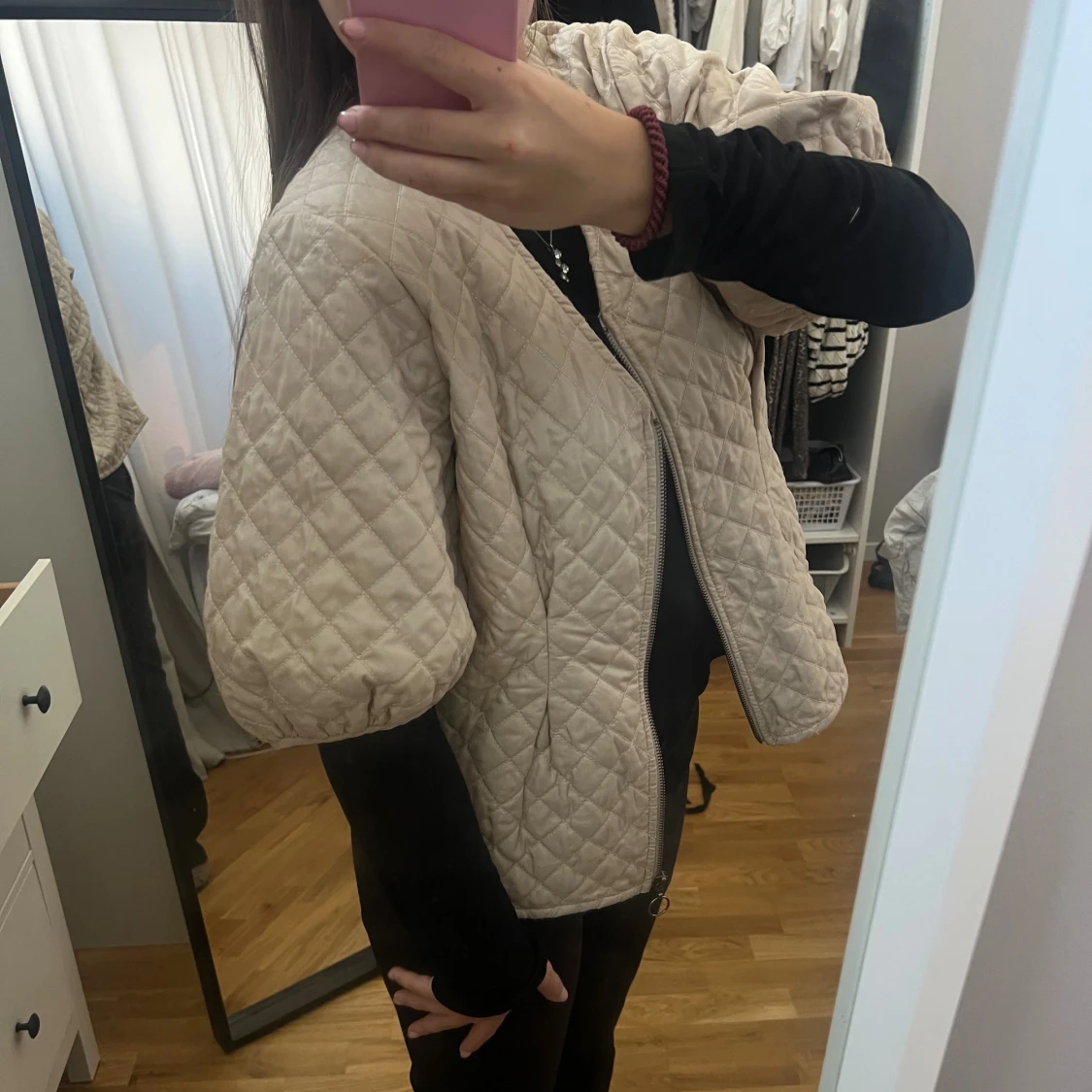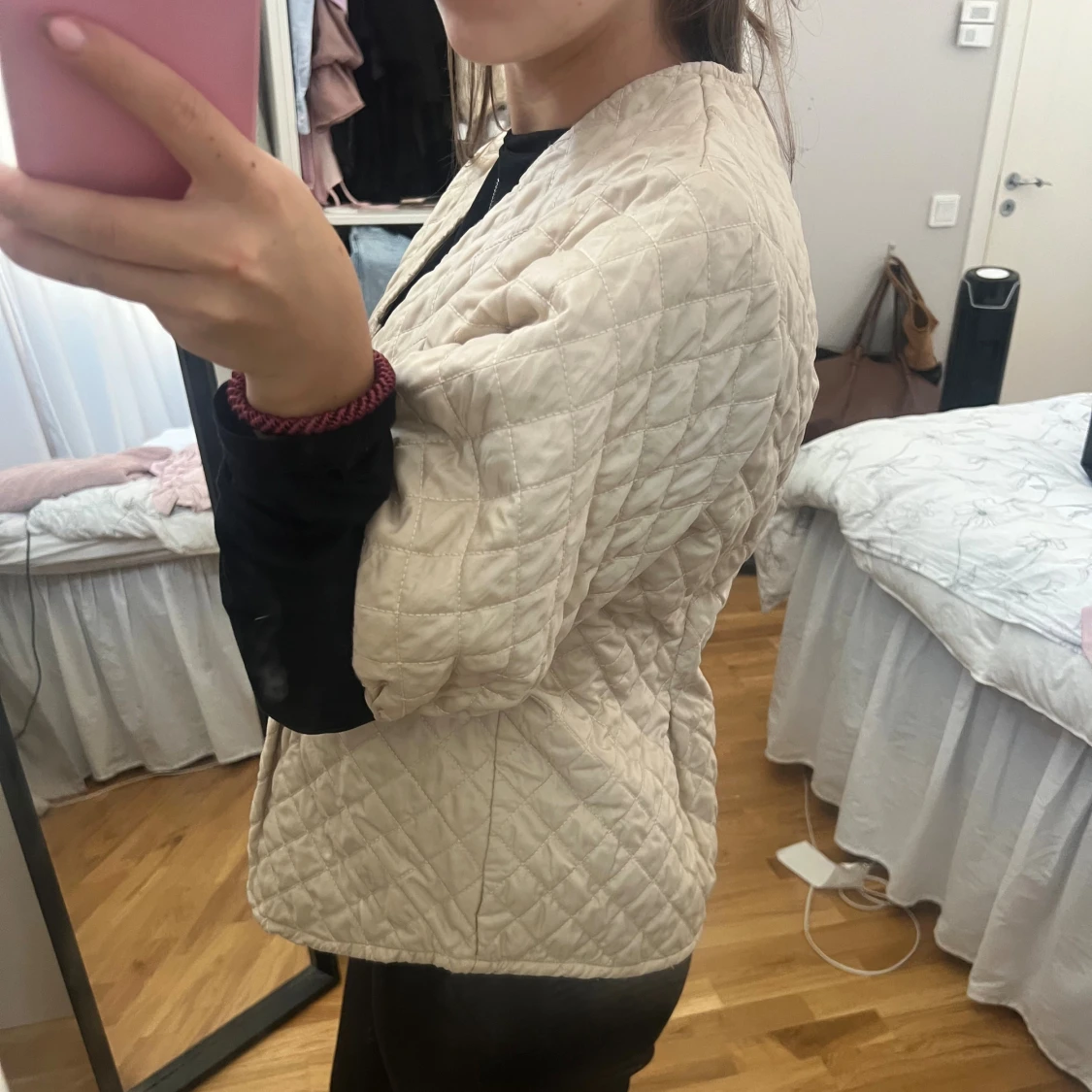 Quiltad beige väst som är supersnygg och trendig, aldrig använd!🤎Nypris 599kr, sätter ett pris men kan lätt kompromissa ner. Passar en XS-M beroende på om man vill ha lite oversized eller inte!!🥹🥹Men lappen står M