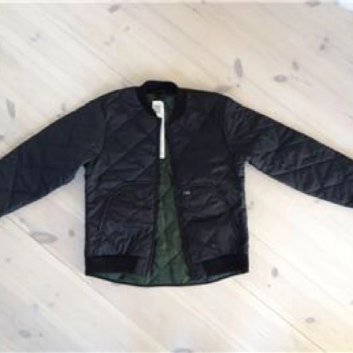 Hej, jag säljer en HELT ny jacka. Jackan är i storlek M, svart med grönt foder, stängs med dragkedja i fram, är quiltad och har muddar i halsringning och ärmslut samt har två fickor. Hör av dig om du undrar något!