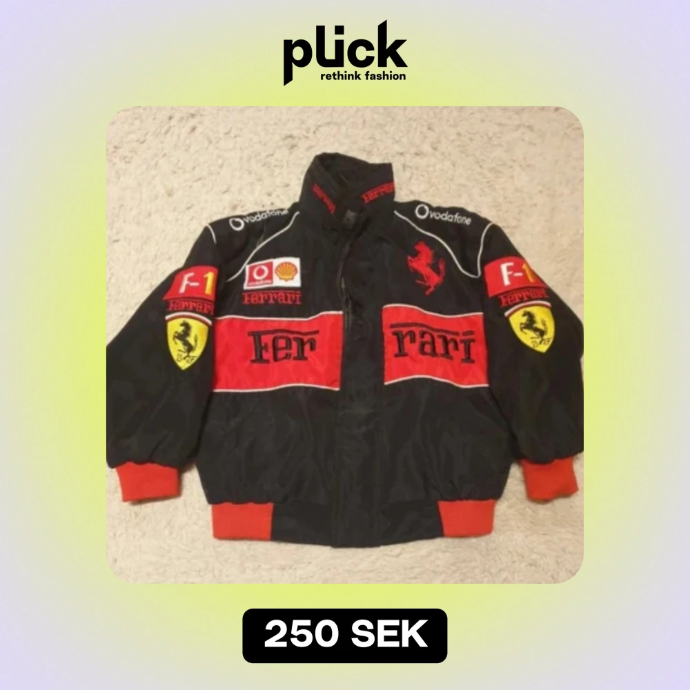 Säljer denna skitsnygga och gulliga ferrari- barnjacka! Köpt secondhand, är i bra skick men dragkedjan är tyvärr trasig men man kanske kan fixa de. Priset går att diskuteras.Armlängd ca 33cm, hela jackan ca 40cm 😊 Bilderna är inte mina!