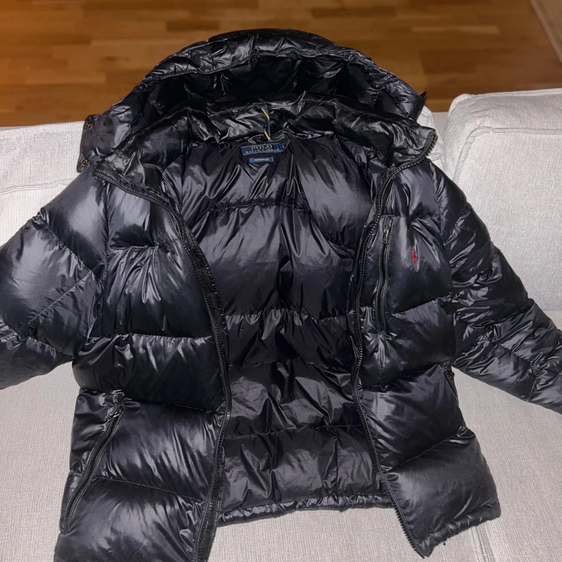 Snygg svart pufferjacka från Polo Ralph Lauren med glansig finish och röd logga på bröstet. Inga defekter eller problem då den är sparsamt använd och bara använd 2 vintrar. Bara skriva om det är några frågor eller funderingar!