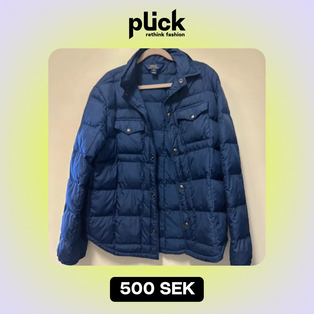 Säljer en snygg blå quiltad jacka från Polo Ralph Lauren i storlek XL. Jackan har långa ärmar och praktiska fickor med knappar. Perfekt för höst och vinter, med en stilren look och bekväm passform. Passar både till vardags och lite finare tillfällen. 🧥💙