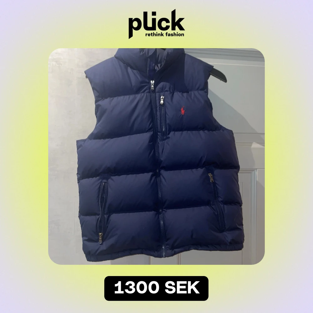 Säljer en snygg mörkblå dunväst från Ralph Lauren. Västen har en dragkedja framtill och två praktiska fickor med dragkedjor. Perfekt för kyliga dagar och ger en stilren look. Den är i mycket bra skick och passar perfekt för höst och vinter. ❄️ Hör gärna av dig om du har frågor! Storlek 18-20 år eller barnstorlek:XL vuxen storlek: M