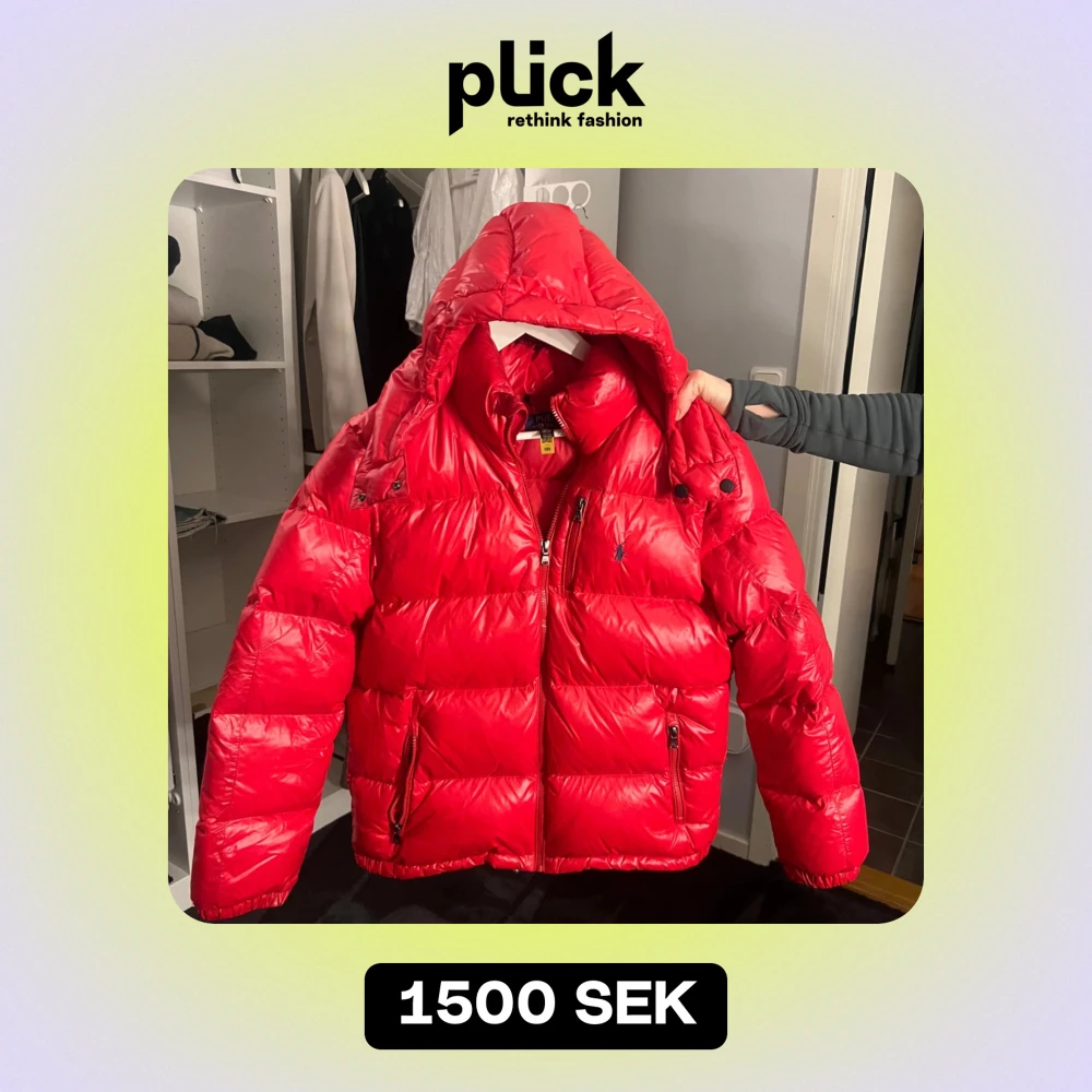 Säljer en snygg och varm röd dunjacka från Polo Ralph Lauren. Jackan har en pufferstil med dragkedja och huva, perfekt för kalla vinterdagar. Den är i mycket bra skick och har praktiska fickor med dragkedjor. Passar perfekt för både vardag och vinteraktiviteter. 🧥🔥