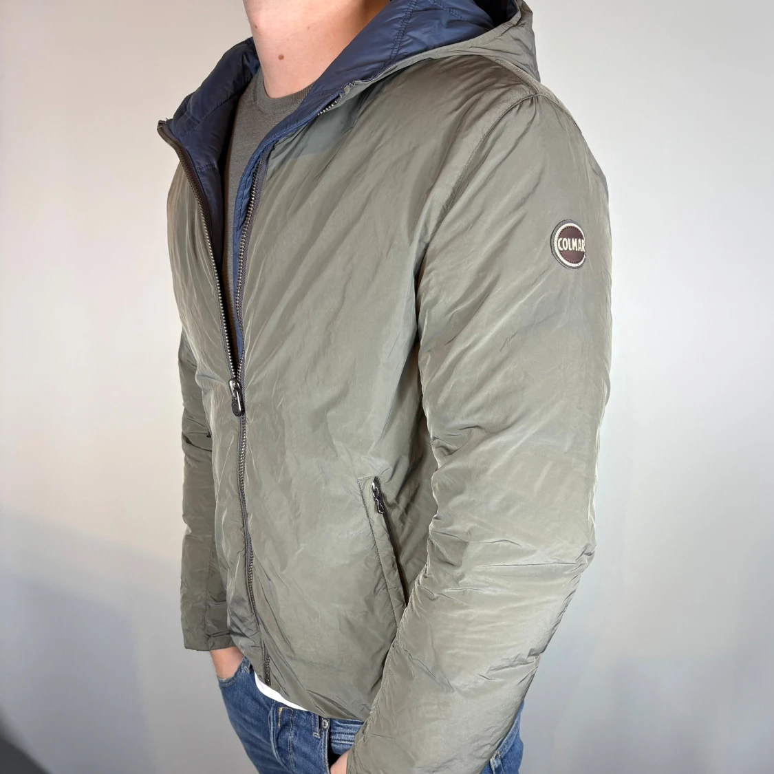 En väldigt snygg colmar jacka med luva och dunfodring inuti i fint skick! Passar S ungefär. Hör av er vid frågor!