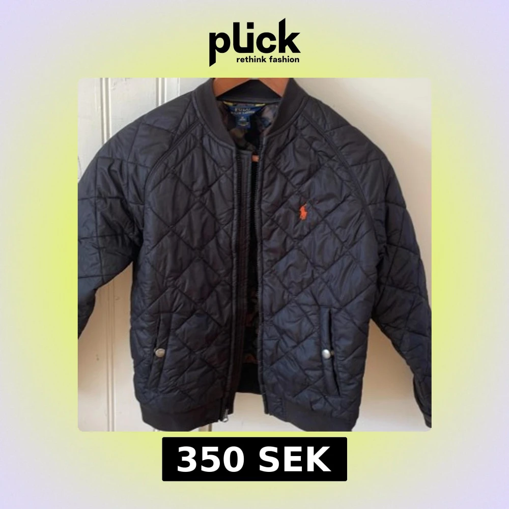 Jättesnygg jacka från Ralph Lauren. Svart med militärfärgat innertyg. Så tuff! Storlek M, 10-12 år