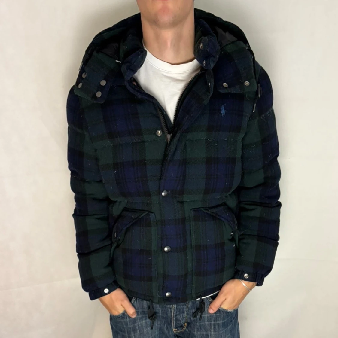 Riktigt skön raffe jacka, storlek S. Modellen är 185. Väldigt fint skick, enbart lite damm på bilden.