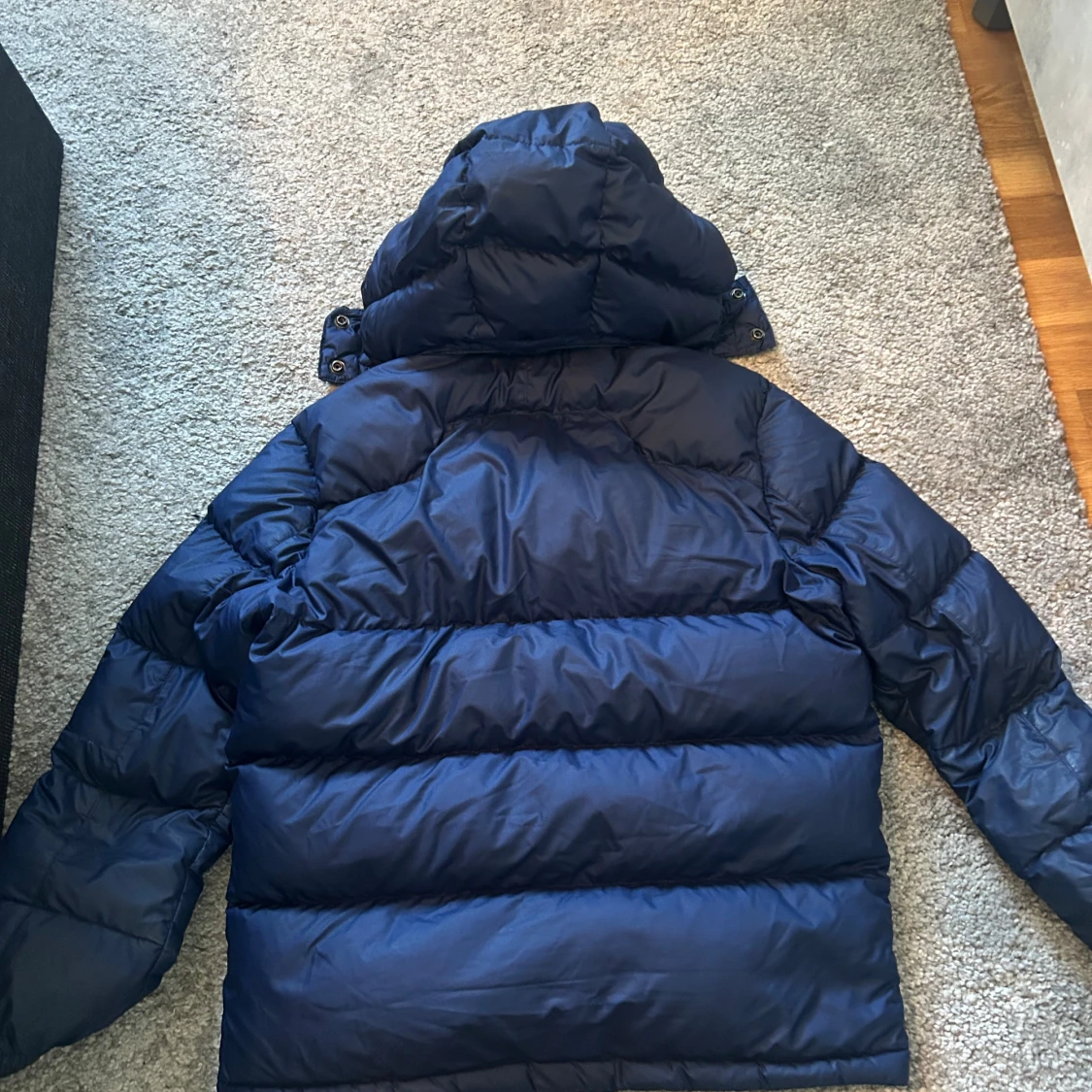 Säljer en mörkblå pufferjacka från Polo Ralph Lauren med huva och dragkedja framtill. Jackan har två sidofickor med dragkedja och en bröstficka, samt klassisk Polo-logga broderad på bröstet. Perfekt för kalla dagar och riktigt snygg streetstil.