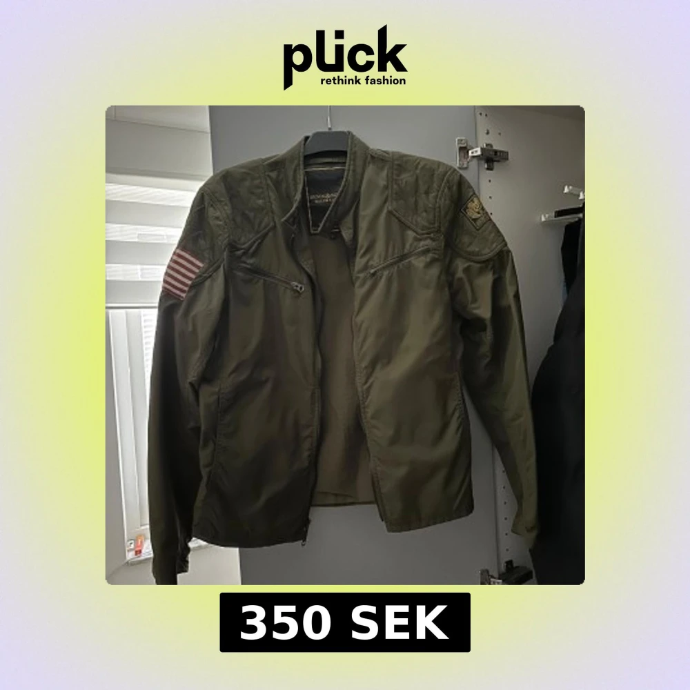 Säljer en grön jacka från Ralph Lauren med coola detaljer som dragkedjor och patchar på ärmarna. Jackan har en militärinspirerad look och är perfekt för höst och vår. Den har långa ärmar och en stilren design.