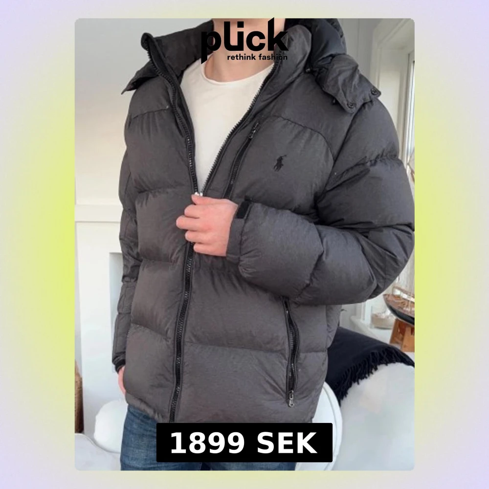 Säljer en mörkgrå pufferjacka från Polo Ralph Lauren med huva och dragkedja framtill. Jackan har två sidofickor med dragkedja och diskret logga på bröstet. Perfekt för kalla dagar och riktigt skön att bära över en hoodie eller tröja.