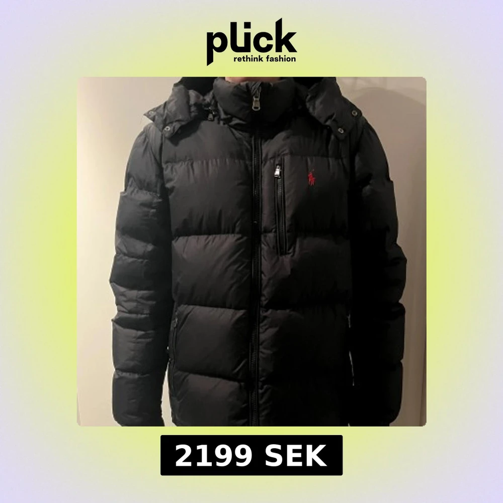 Snygg svart dunjacka från Ralph Lauren med dragkedja och huva. Jackan har en broderad logotyp på bröstet och praktiska fickor. Perfekt för kalla dagar. Modellen är 185 och den är för stor så passar om man är 190-195