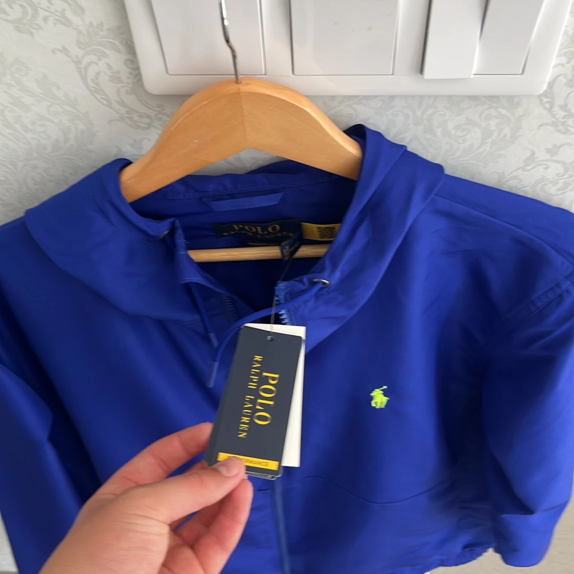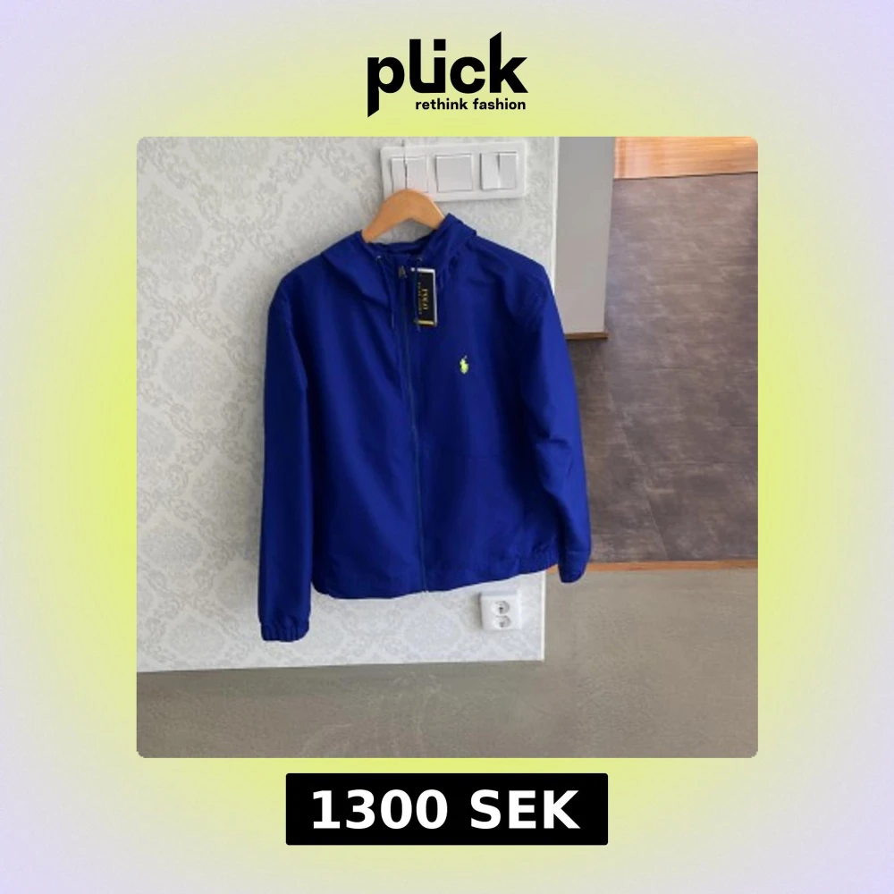 Snygg blå vindjacka från Polo Ralph Lauren med huva och dragkedja framtill. Jackan har elastiska muddar och en gul broderad logga på bröstet. Perfekt för dig som vill ha en stilren och sportig look. Lätt och smidig att bära med sig. Kan gå ner i pris vid snabb affär