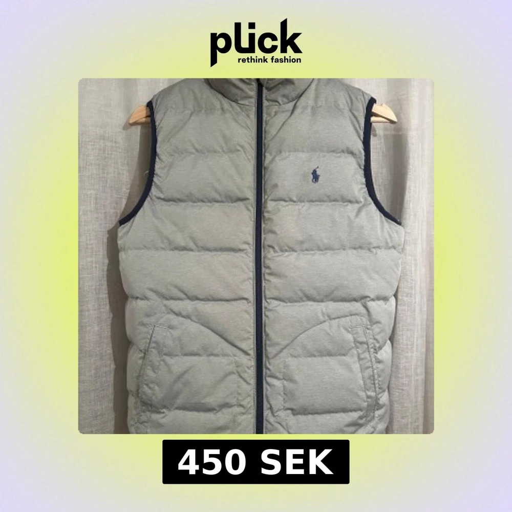 Två snygga dunvästar från Polo Ralph Lauren, en i ljusgrått och en i marinblått. Båda har quiltad design, dragkedja framtill och broderad logga på bröstet. Perfekt för lager-på-lager och chill stil. Fickor med dragkedja och hög krage för extra värme. Den är i storlek L (14-16) och har ett litet hål.