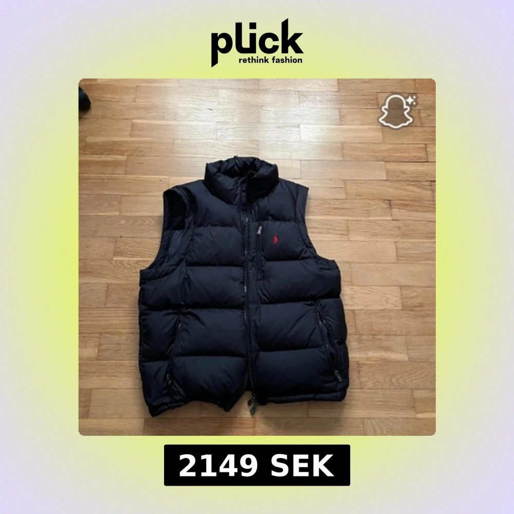 Mörkblå dunväst från Polo Ralph Lauren med hög krage och dragkedja framtill. Västen har två fickor med dragkedja och den klassiska röda Polo-loggan broderad på bröstet. Perfekt för lager-på-lager och stilren look.