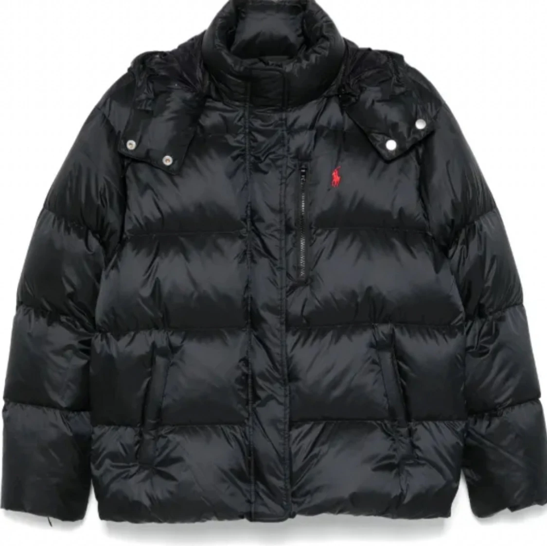 Säljer en svart pufferjacka från Polo Ralph Lauren med röd logga på bröstet. Jackan har hög krage, dragkedja framtill och praktiska fickor. Perfekt för kalla dagar och riktigt snygg till streetwear-stilen.