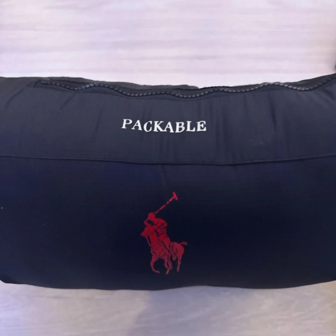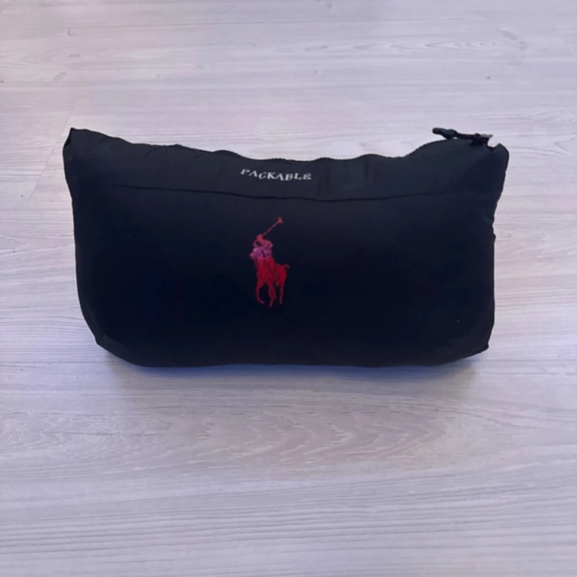 Svart dunjacka från Polo Ralph Lauren med huva och dragkedja. Jackan har den klassiska röda Polo-loggan broderad på bröstet och är lätt att packa ner i medföljande påse. Perfekt för kalla dagar och enkel att ta med sig. Snygg och stilren design.