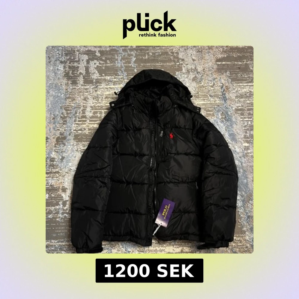 Svart pufferjacka från Polo Ralph Lauren med huva och dragkedja. Jackan har quiltad design, två sidofickor med dragkedja och en röd broderad logga på bröstet. Perfekt för kalla dagar och riktigt snygg till streetwear-stilen.