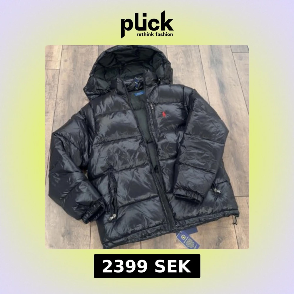 Svart pufferjacka från Polo Ralph Lauren med huva och dragkedja. Jackan har en glansig finish, två sidofickor med dragkedja och röd broderad logga på bröstet. Justerbar nederkant med snörning och quiltad design för extra värme. Perfekt för kalla dagar.
