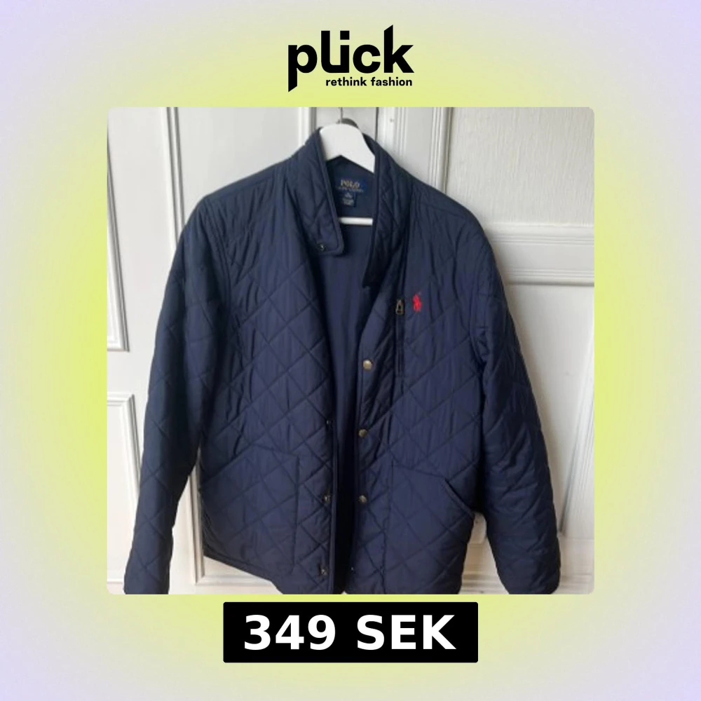 Snygg mörkblå quiltad jacka från Polo Ralph Lauren med klassisk röd logga på bröstet. Jackan har ståkrage, tryckknappar samt två fickor framtill. Perfekt för höst och vår när du vill ha en stilren look. Slitage på båda fickorna och en av knapparna har åkt av