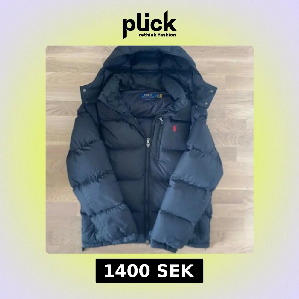 Svart dunjacka från Polo Ralph Lauren med huva och dragkedja framtill. Jackan har en klassisk pufferstil, tre fickor med dragkedja och ikonisk röd logga på bröstet. Perfekt för kalla dagar och riktigt snygg till streetwear.