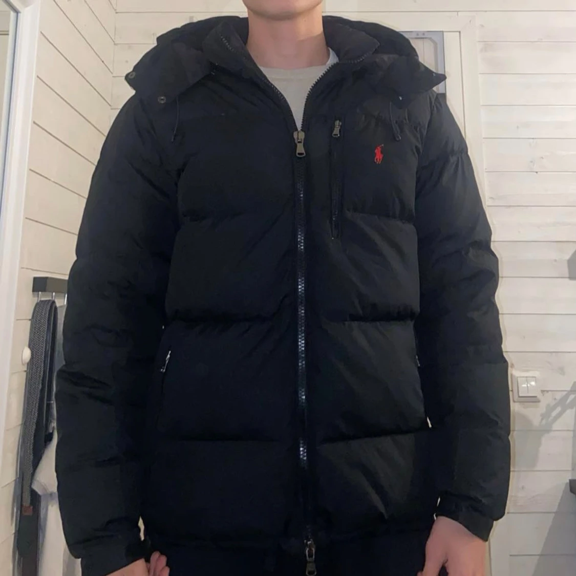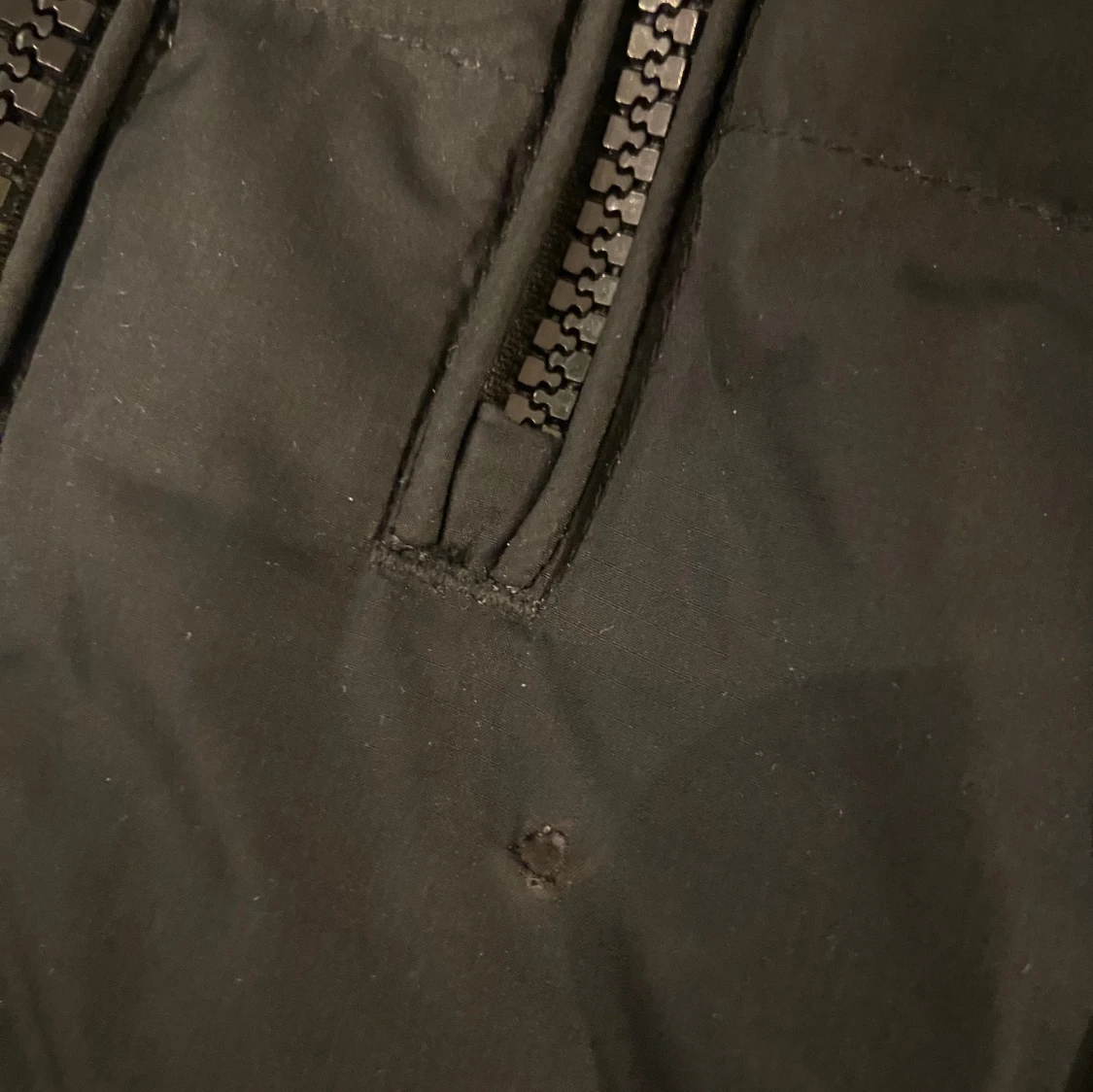 Fint skick, defekter syns på sista bilderna. Spännet till luvan är av och finns ett litet hål. Storlek M, jag på bilden är 182, normal i storleken. Kom gärna med prisförslag eller andra frågor!