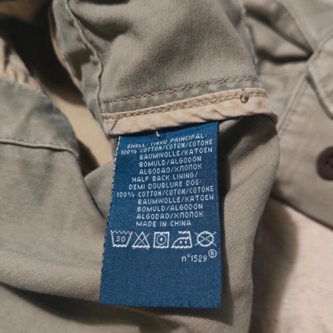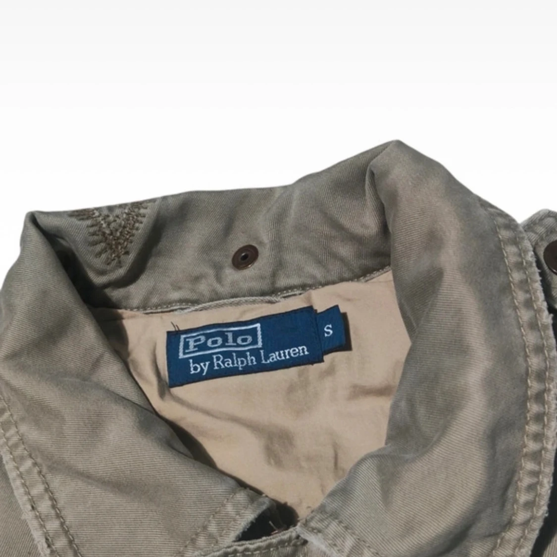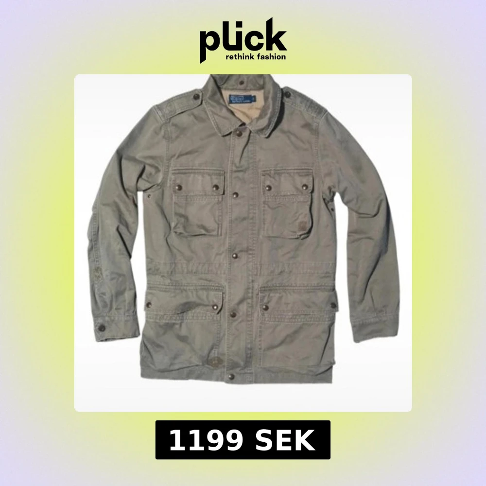 Snygg grå parkajacka från Polo Ralph Lauren i 100% bomull. Jackan har fyra stora fickor med knappar framtill, axelklaffar och en dragkedja på ryggen. Klassisk krage och långärmad design, perfekt för dig som gillar utility-vibe. Size small, men skulle säga att den passar size large.