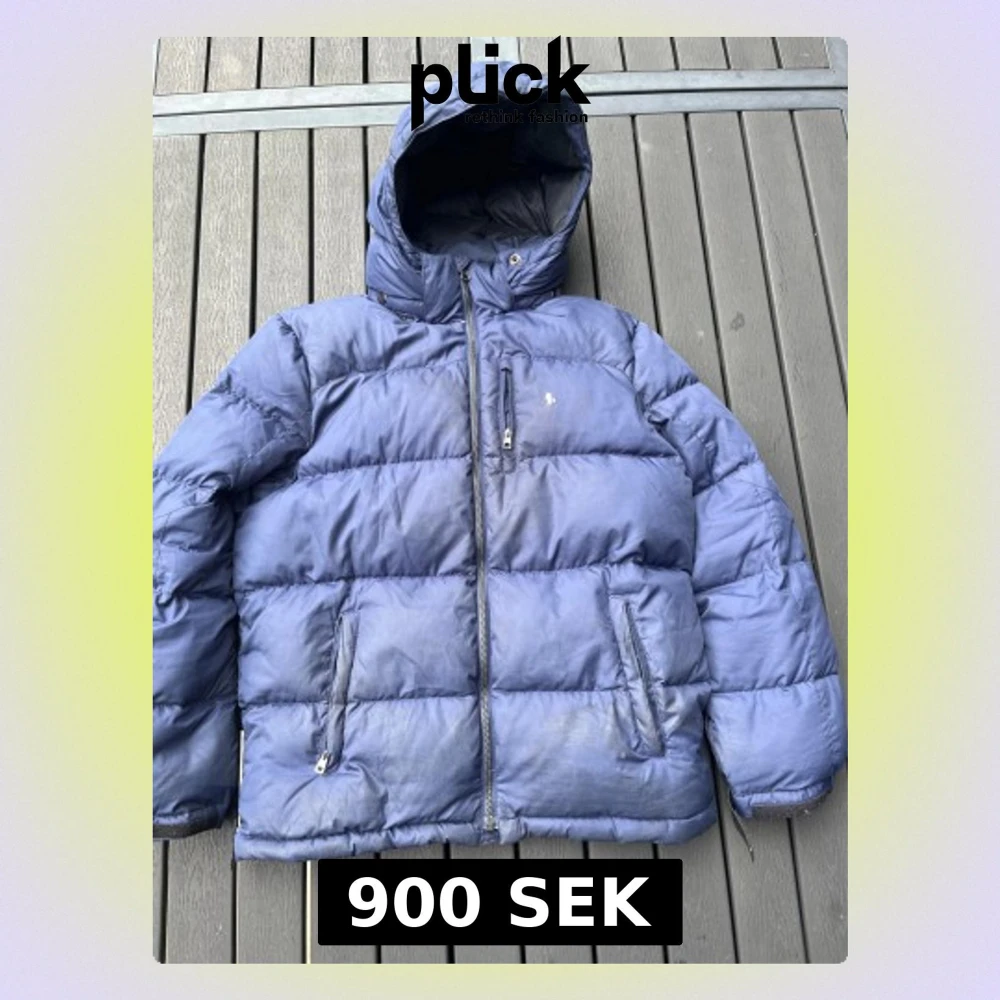 Ralph lauren pufferjacket i använt skick, de finns skador och den är även smutsig, kolla alla bilder, finns lite fler skador så skriv för fler bilder, storlek L 14-16/ xs