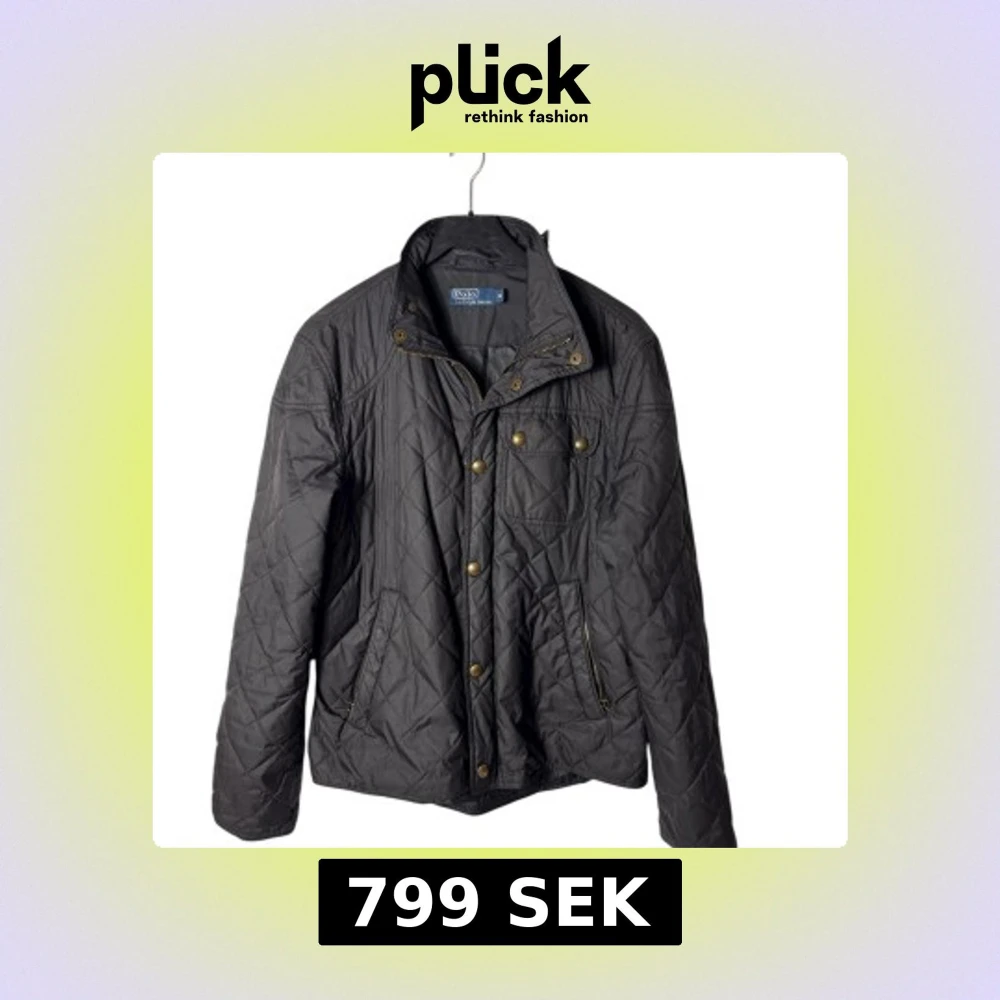 Svart quiltad jacka från Polo Ralph Lauren med snygga guldfärgade knappar och dragkedja. Jackan har hög krage, fickor med dragkedja och tryckknappar samt ett stilrent rutmönster. Perfekt för dig som gillar klassisk och clean stil.