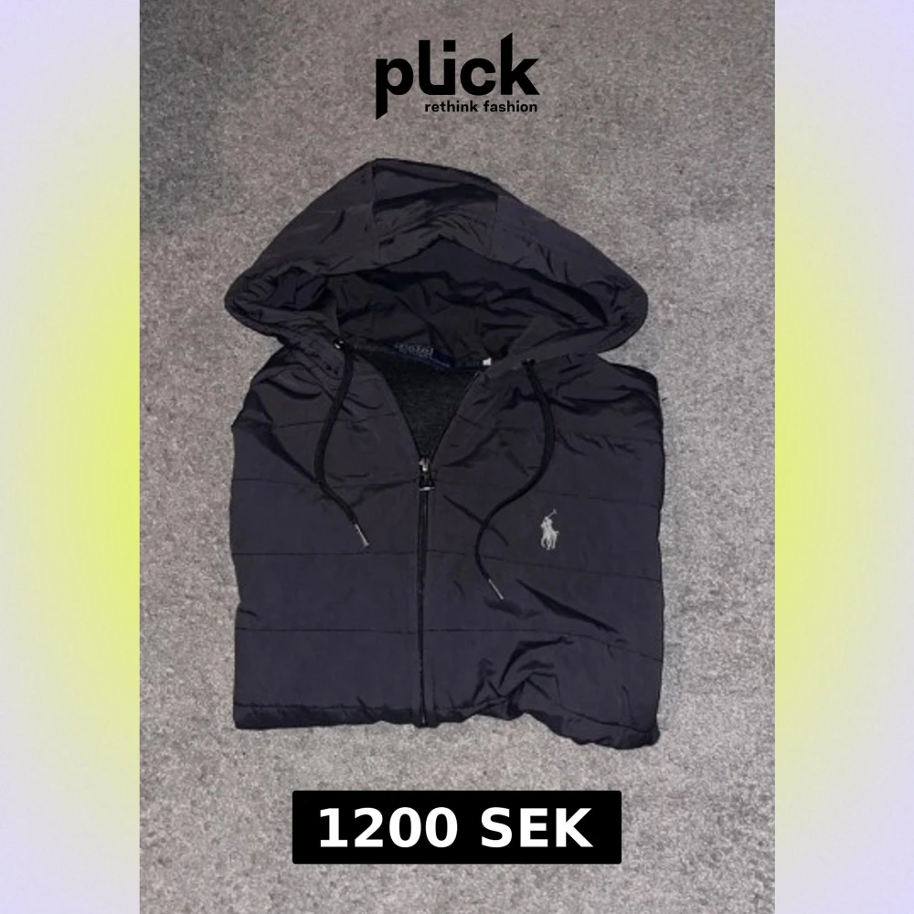 Svart pufferjacka från Polo Ralph Lauren med huva och snörning. Jackan har quiltad framsida, dragkedja och diskret logga på bröstet. Ärmar och rygg är i mjuk bomull, medan framsidan är i syntetmaterial. Perfekt för höst och vinter.